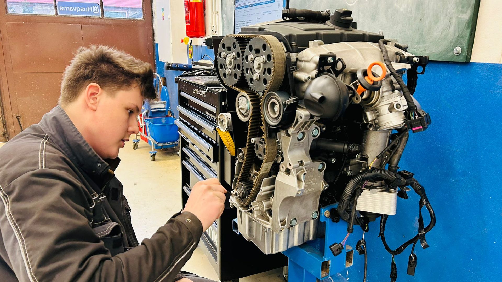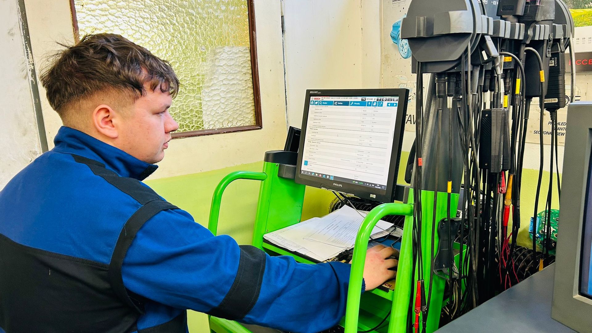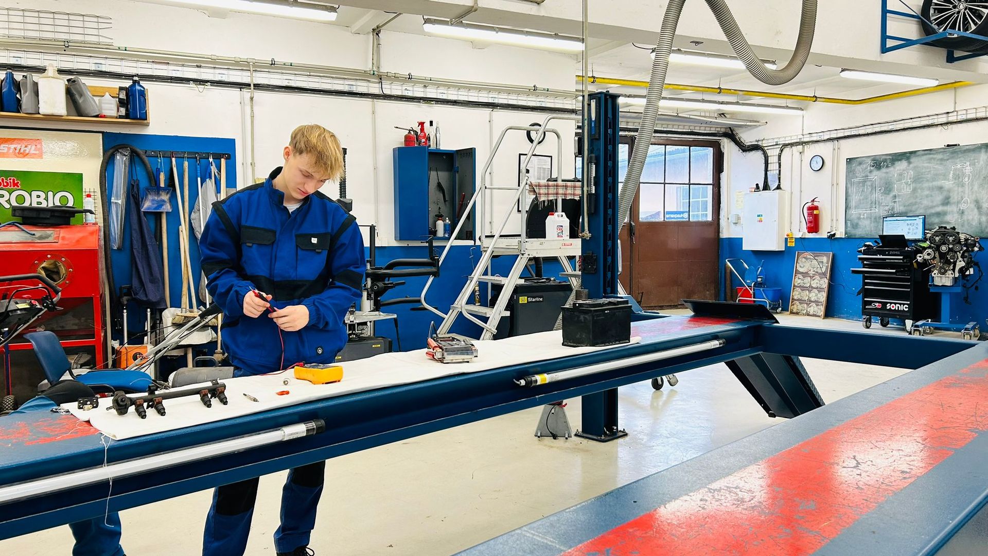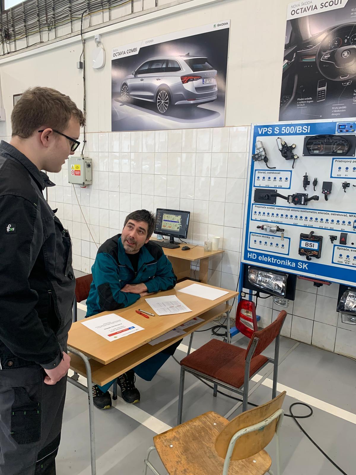 Následujícího dne se role pořadatele regionálního kola v kategorii Autotronik pro změnu ujala naše škola. Soutěž probíhala v moderním zázemí dílen odloučeného pracoviště ve Vrbičanech. Na účastníky čekala stanoviště zaměřená na diagnostiku zážehových motorů, měření elektronických součástek či seřizování ventilů. Nechyběl ani náročný test a rovněž poznávací část čítající 30 dílů.