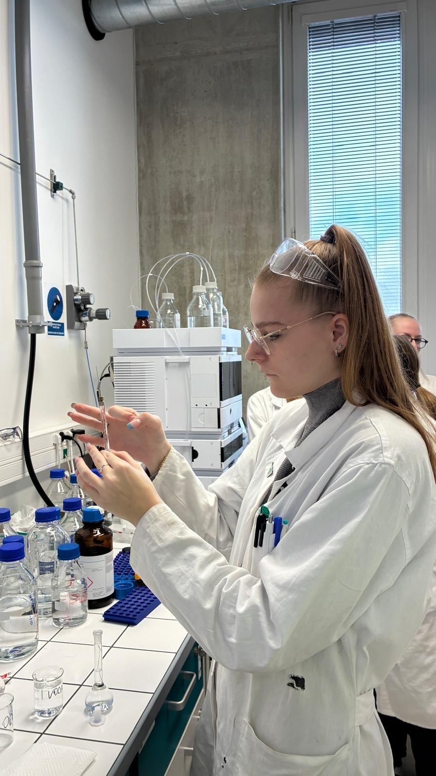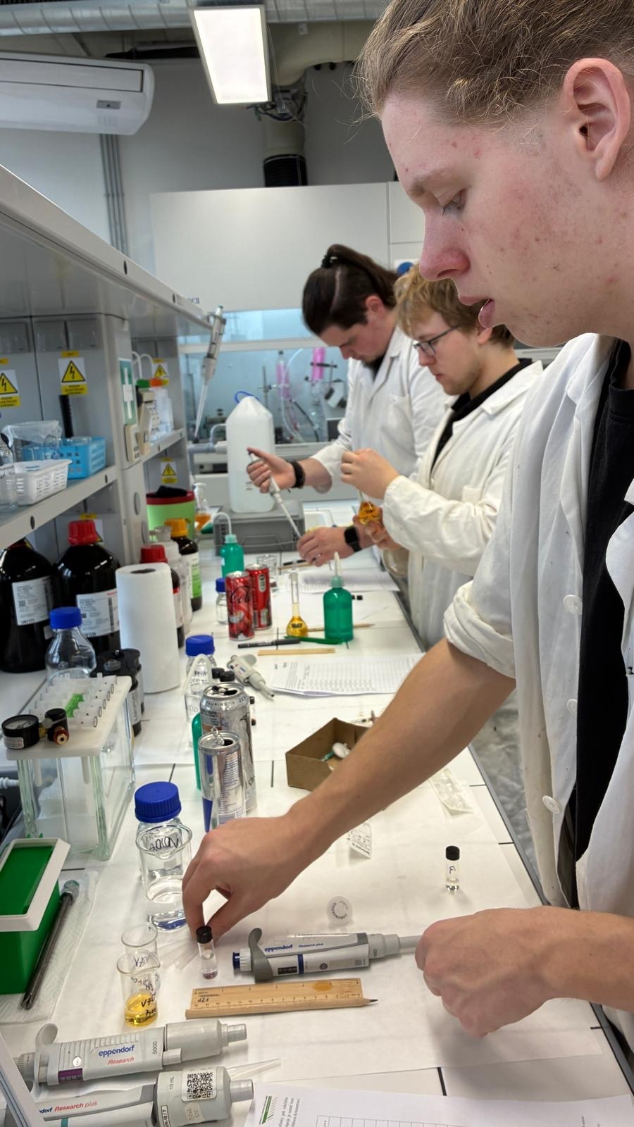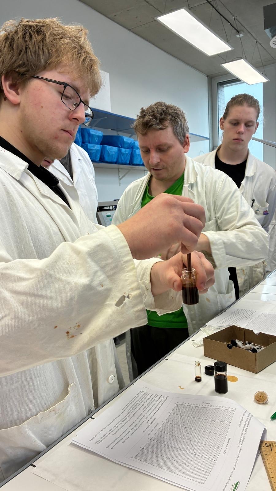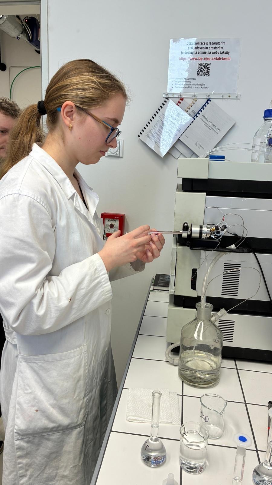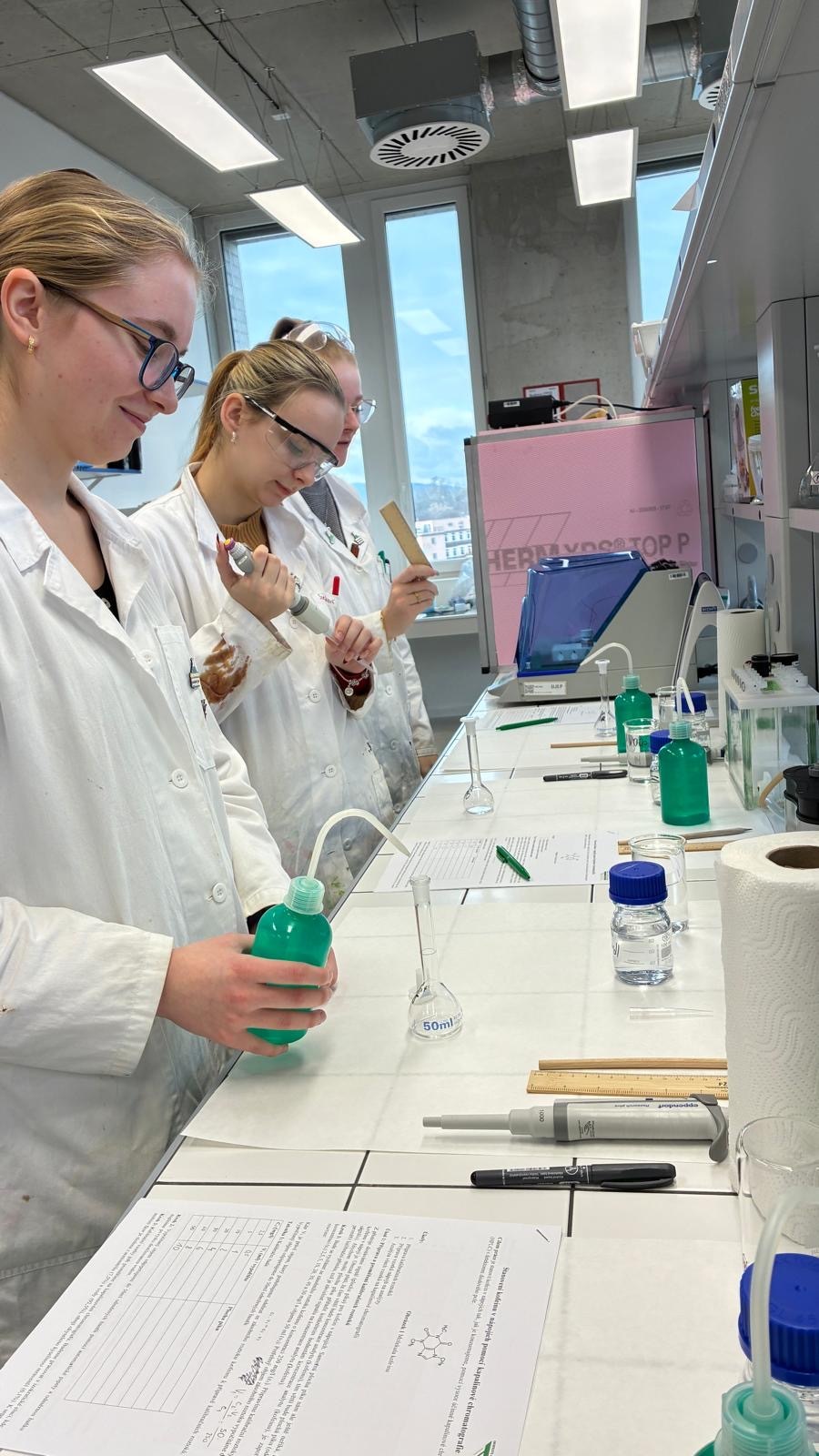 Cvičení bylo rozděleno do tří specializovaných bloků analytických metod. V rámci kapalinové chromatografie si žáci prakticky vyzkoušeli stanovení kofeinu v běžně dostupných nápojích, na pracovišti polarografie se zaměřili na stanovení azobarviv používaných v potravinářství a pomocí infračervené spektrometrie pak identifikovali různé druhy plastů, což je postup hojně využívaný především ve výrobní praxi.