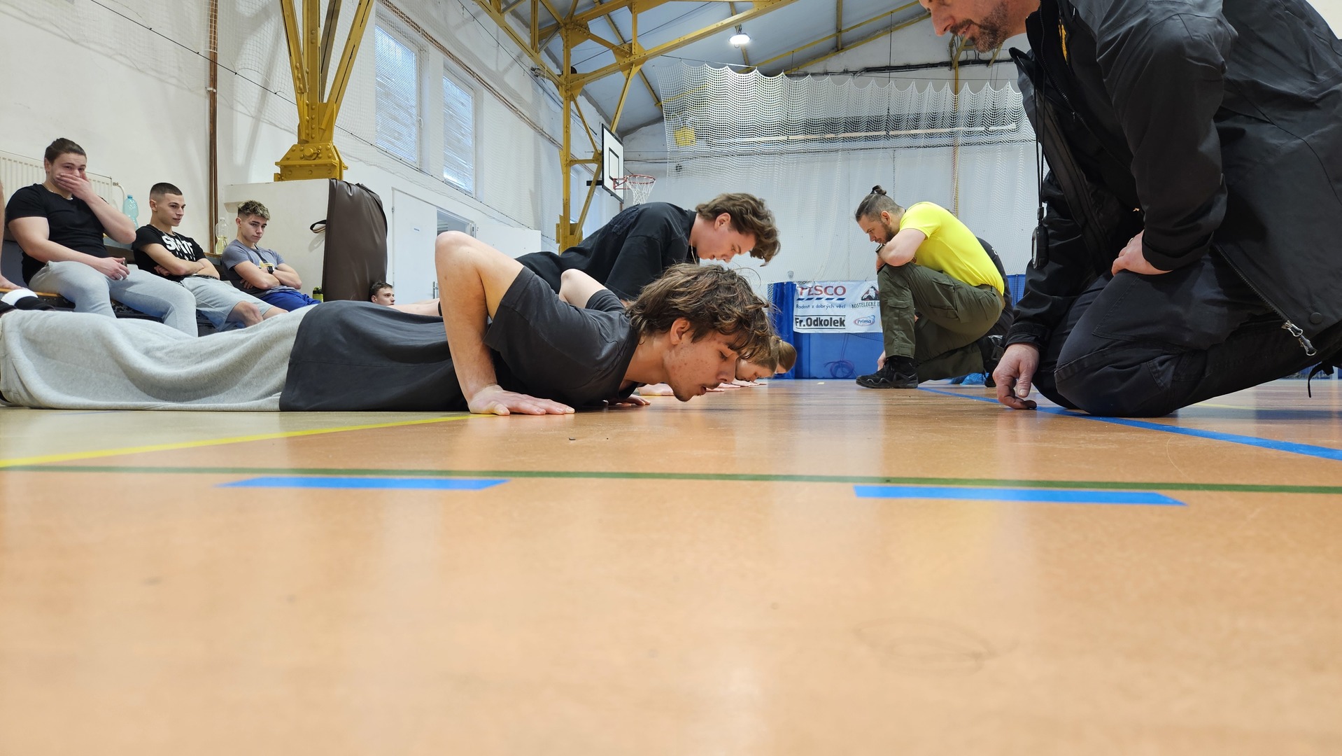 Ve sportovní hale tak vybraní žáci 3. a 4. ročníků absolvovali celkem čtyři disciplíny, a to člunkový běh, běh na 1000 metrů, cvičení kliků a celomotorický test. Výsledkem celé akce je možnost získat osvědčení o splnění fyzické způsobilosti. Platnost osvědčení je časově omezena, nicméně v případě zájmu o práci u PČR mají žáci splněnu jednu třetinu přijímacího řízení. Následně jim zbývá jen zvládnout psychotesty a absolvovat zdravotní prohlídku. Pro úplnou představu, co práce u policie obnáší, předcházela samotnému testování náborová beseda s bližšími informacemi.