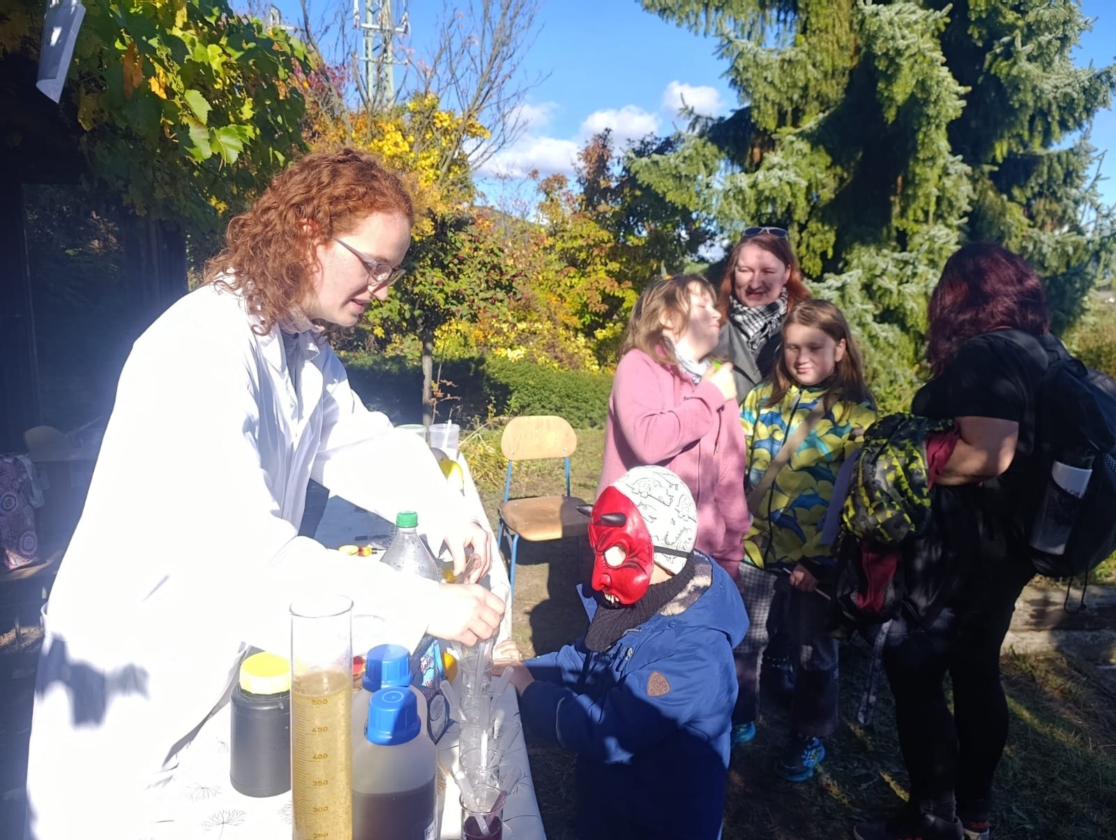 Program byl i letos bohatý. Dlabání dýní se stalo hitem dne – vznikaly strašidelné obličeje, roztomilé výrazy i opravdová umělecká díla. U kreativních stolků si návštěvníci mohli vyrobit papírové houby, které si s sebou odnesli domů jako milou památku. Nechyběla ani dobrodružná stezka s pokladem, která vedla skrz zahradu a prověřila vědomosti dětí. Na jednom ze stanovišť probíhaly chemické pokusy. Děti se seznámily s blinkající plechovkou, barevnou fontánou a s nafukovací rybou. Zpestřením celé akce byl tematický fotokoutek, kde se mohli návštěvníci vyfotit.